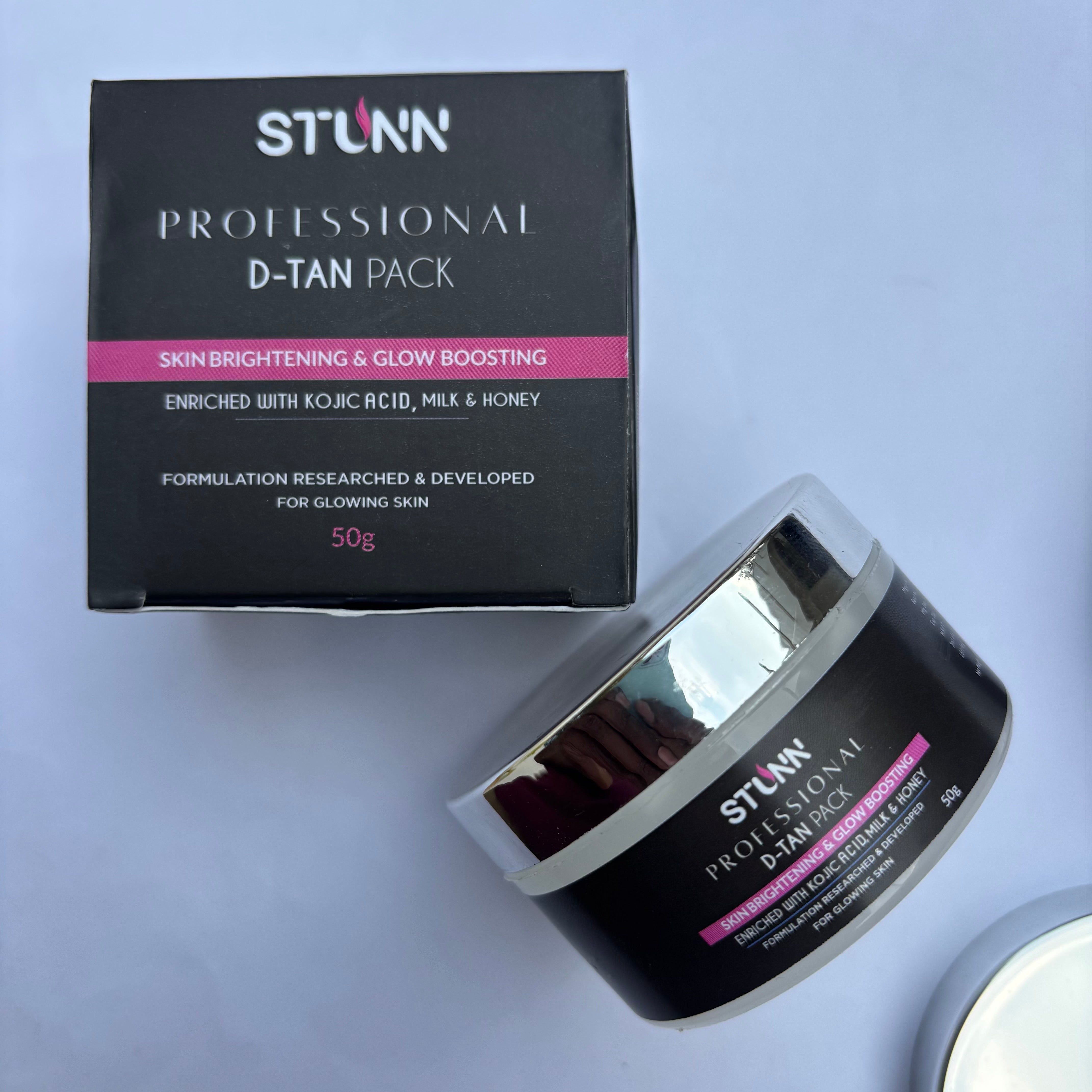 STUNN Professional D-Tan Pack is an advanced skin-reviving treatment designed to effectively reduce tanning, restore natural brightness, and enhance overall skin glow. Specially formulated with a potent blend of kojic acid, milk, and honey, this professional-grade cream works deep within the skin to eliminate dullness and reveal a fresher, more radiant complexion.